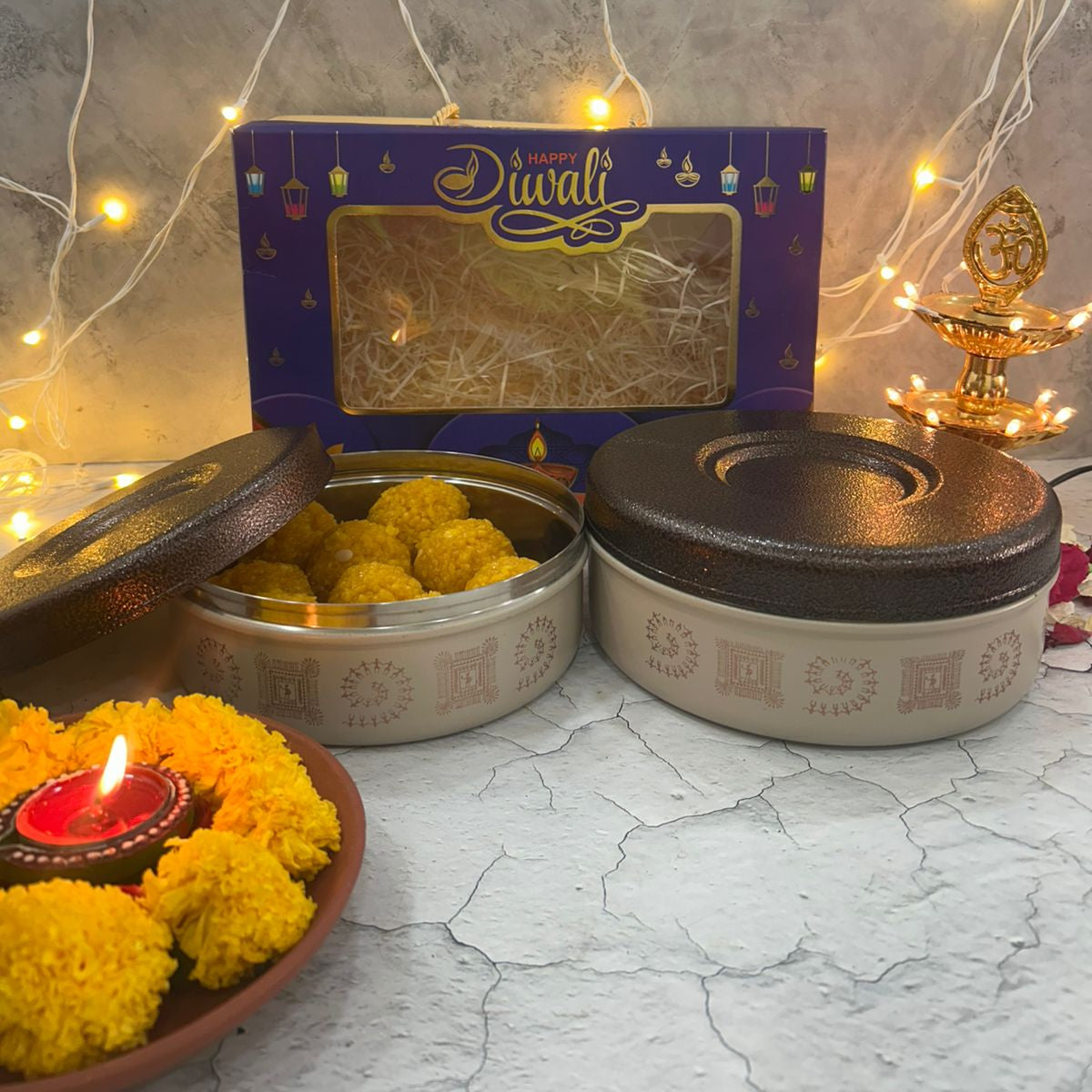 Diwali Gifting Box Stainless Steel Containers Set of 2